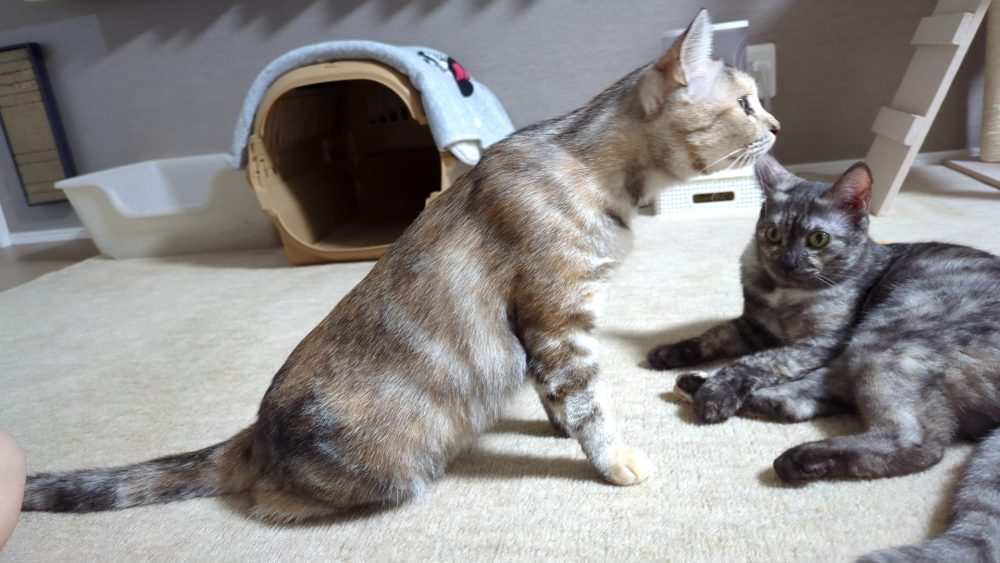病院で見てもらいたい気もしますが、ニコとプロレスもするくらい元気な面はありますし、何よりおもらしするレベルでキャリーが嫌いなので余計なことはしないほうがいいのかって考えてます。