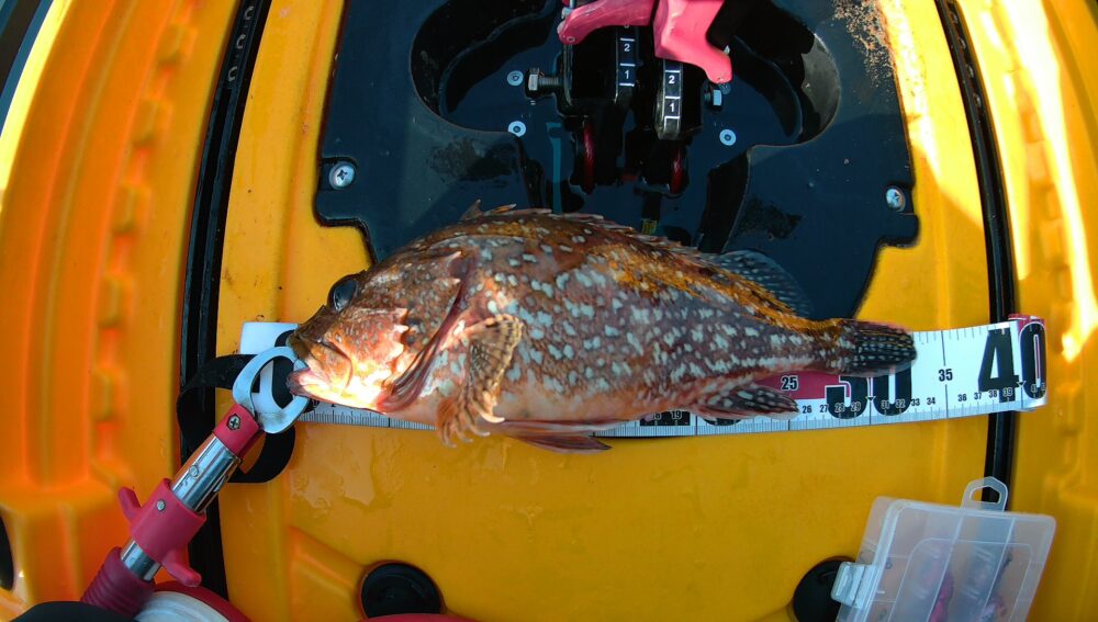 1~2回落とすだけで尺超えのカサゴが入れ食いでした。