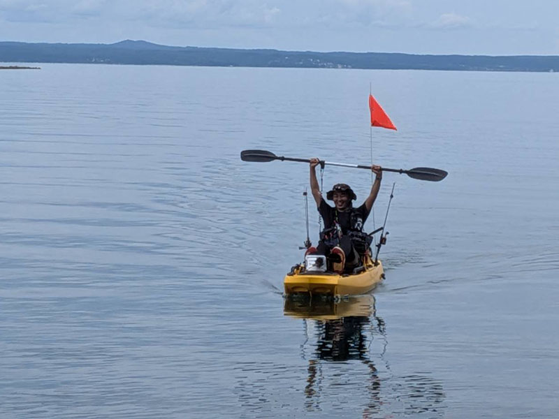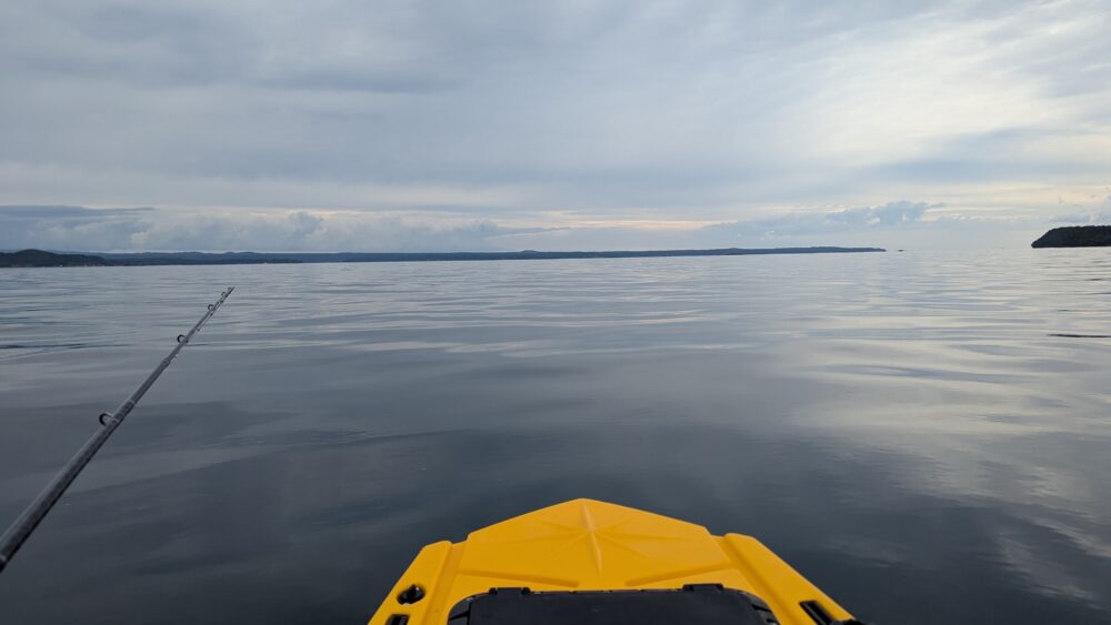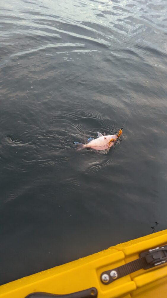 朝5時、カヤック仲間のAさんと新ポイントで合流し、日の出とともに出港!!